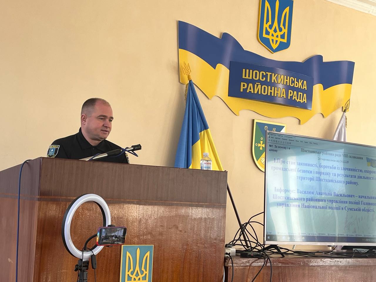 У ході сесії заслухали начальник Шосткинського районного управління поліції Головного управління Національної поліції в Сумській області про стан законності, боротьби із злочинністю, охорони громадської безпеки і порядку та результати діяльності на території Шосткинського району.