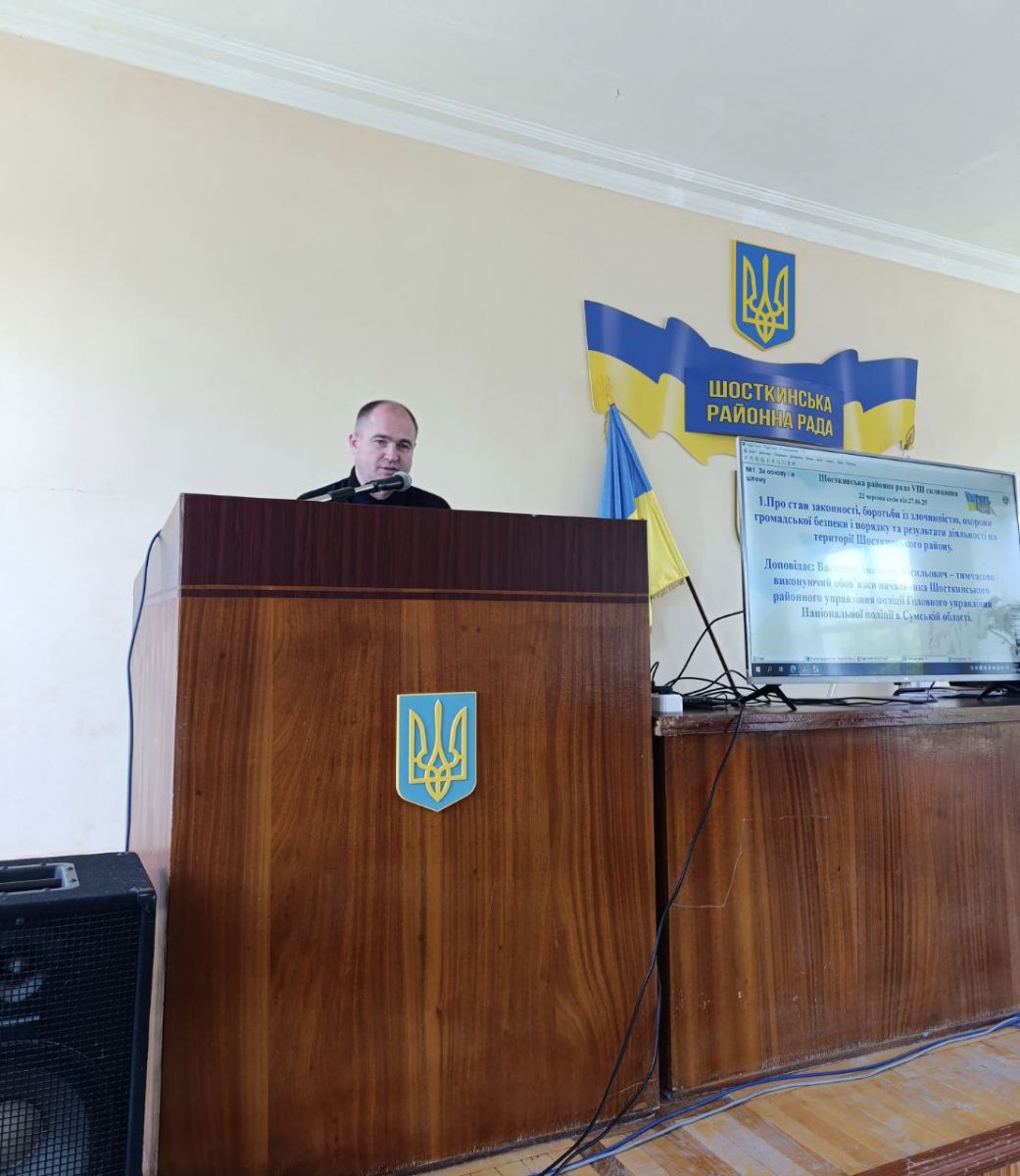 У ході сесії депутати заслухали т.в.о. начальника Шосткинського районного управління поліції ГУНП про стан законності, боротьби із злочинністю, охорони громадської безпеки і порядку та результати діяльності на території Шосткинського району, звіт про виконання районного бюджету Шосткинського району зі І квартал 2025 року та звіт постійної комісії районної ради з питань промисловості, транспорту, зв’язку, будівництва, житлово – комунального господарства та підприємництва.