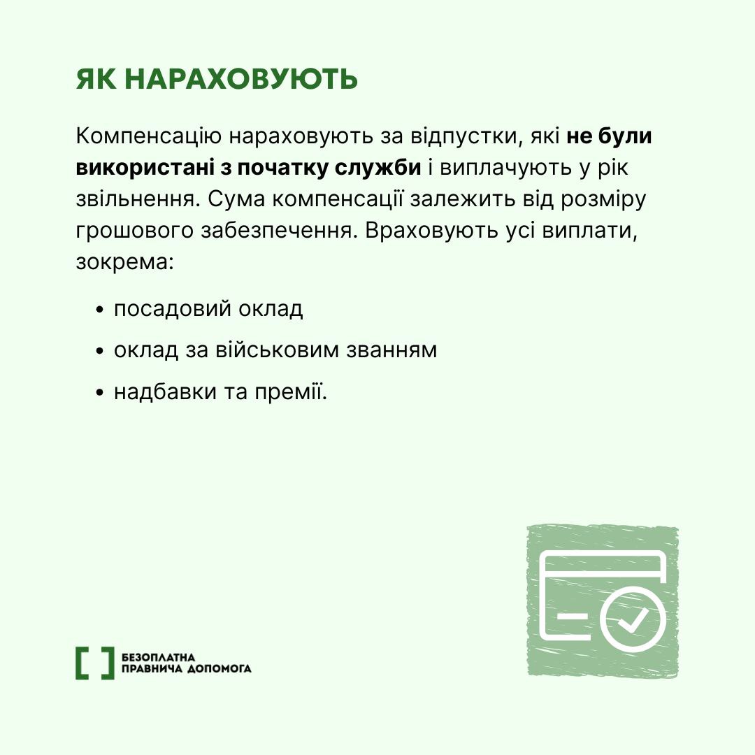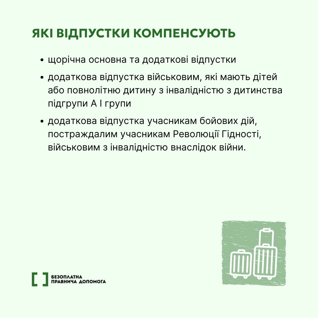 КОМПЕНСАЦІЯ ЗА НЕВИКОРИСТАНУ ВІДПУСТКУ ВІЙСЬКОВОСЛУЖБОВЦЯ