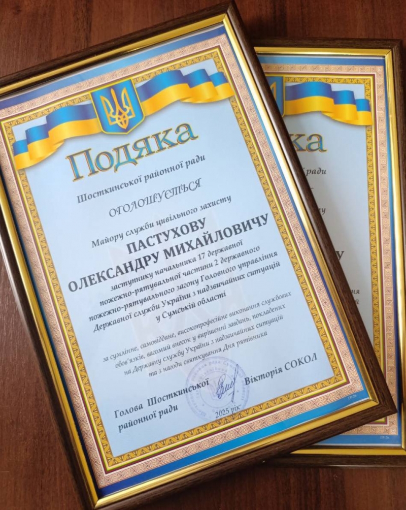 Подяки Шосткинської районної ради за сумлінне, самовіддане, високопрофесійне виконання службових обов’язків, вагомий внесок у вирішення завдань, покладених на Державну службу України та з нагоди святкування Дня рятівника були вручені кращим працівникам.