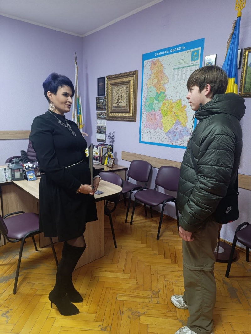З нагоди Дня захисту дітей голова Шосткинської районної ради Вікторія СОКОЛ привітала дитину військовослужбовця.